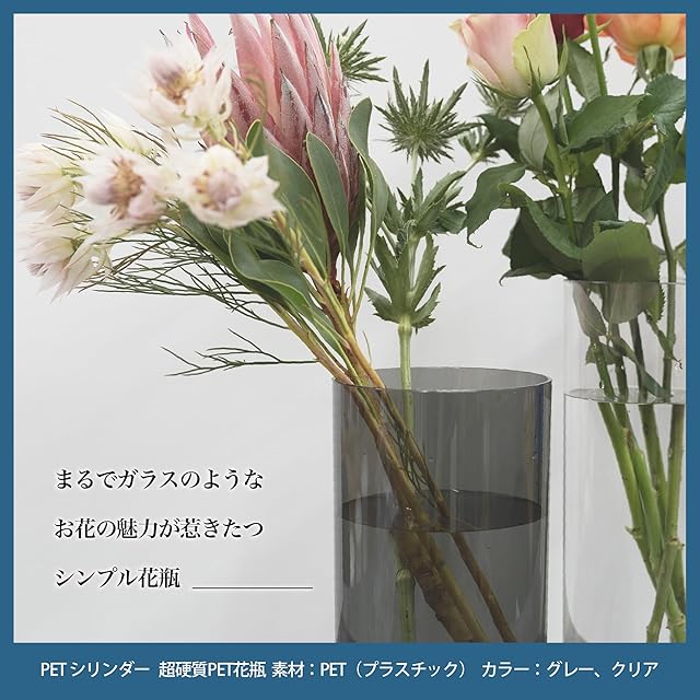 【割れない花瓶】PET製の割れない花瓶です。ガラスのような繊細で美しい見た目なのに落としても割れにくい理想のフラワーベースです。
