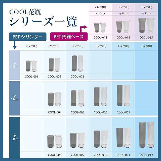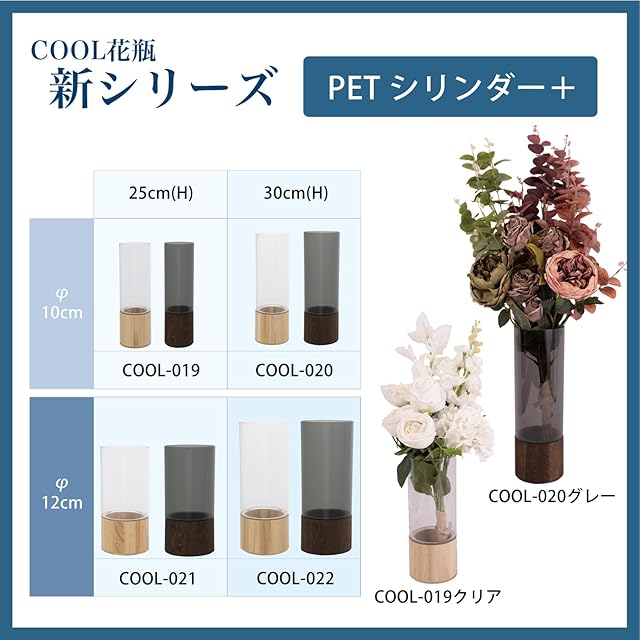 ポピー名古屋 フラワーベース PETシリンダー 直径10cm 高さ約25cm 円柱 木製 割れない 花瓶 cool-019 クリア