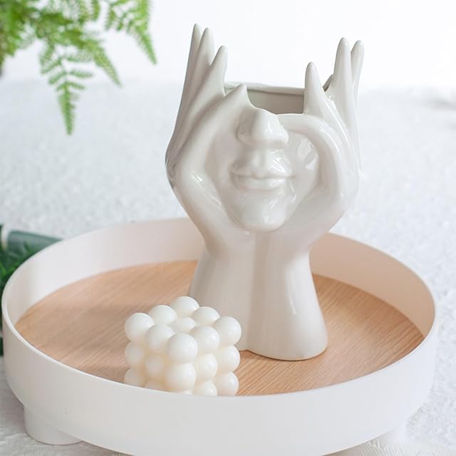 【独特の芸術的なデザイン】:この陶器の花瓶は現代美学のデザイン手法を采用して、女性の顔と首をデザインの霊感にして設計されました。シンプルでエレガント、花を添えると、芸術的な雰囲気を作ります。