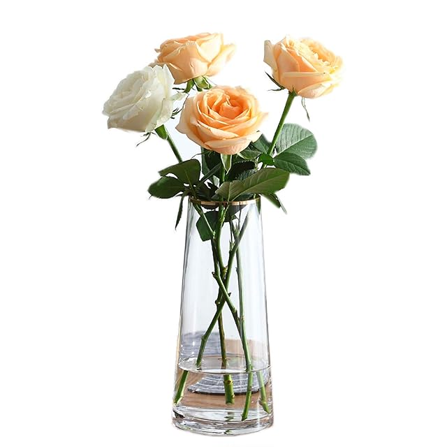 景徳焼 ガラス 花瓶 クリア フラワーベース 大 ストレート型円柱 ガラス製 花瓶 花器 透明 ヨーロピアンスタイル フラワーベース 硝子瓶 北欧風 花器 おしゃれ 美しい (clear-golden edge-22cm)