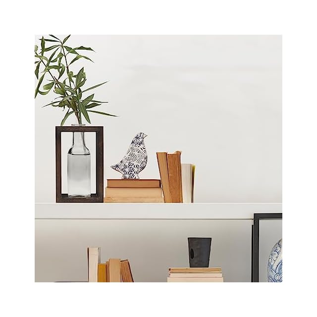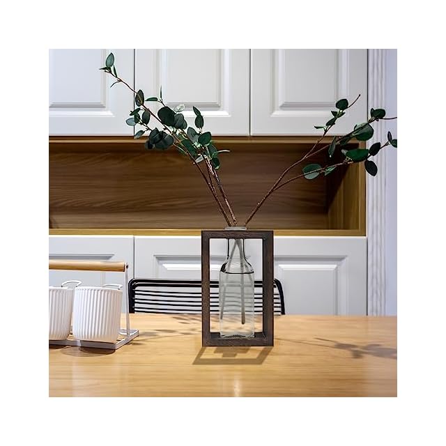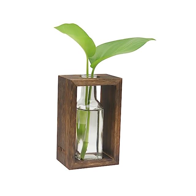OFFIDIX 水耕栽培 ガラス花瓶 フラワーベース 木製フレーム おしゃれ 卓上花器 ホームオフィス装飾
