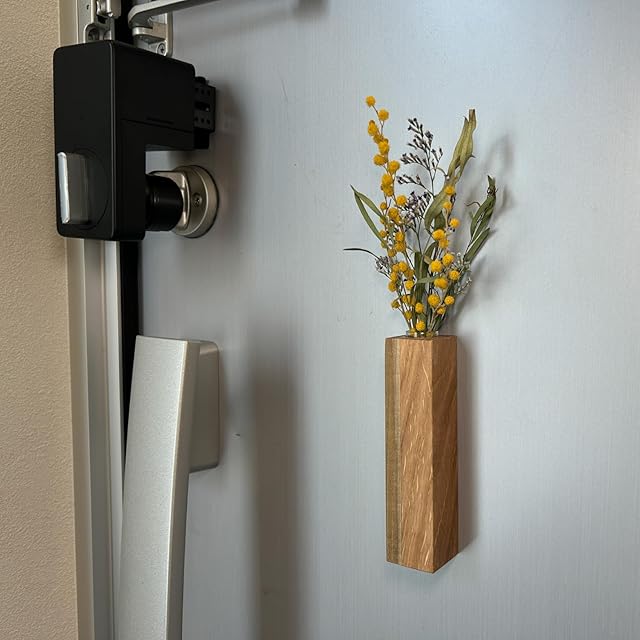 【マグネットで簡単取り付け、卓上使用も可能】本体の裏側に、強力な磁力を持つネオジム磁石(φ12×3mm)を2個埋め込んでいますので、金属面に簡単に取付可能です。玄関ドアや冷蔵庫など金属製の家具をはじめ、画鋲2本で壁面にも取り付けられるため、これまで飾れなかった場所に気軽に花を添えることができます。また、そのままでも自立するので卓上でのご使用も可能です。リビングや寝室、玄関、トイレなど、壁掛けではなく置いて楽しめるのもポイントです。飾る場所を選ばないため、自宅やお店などさまざまな場所で手軽にお花を楽しんでいただける一輪挿しです。