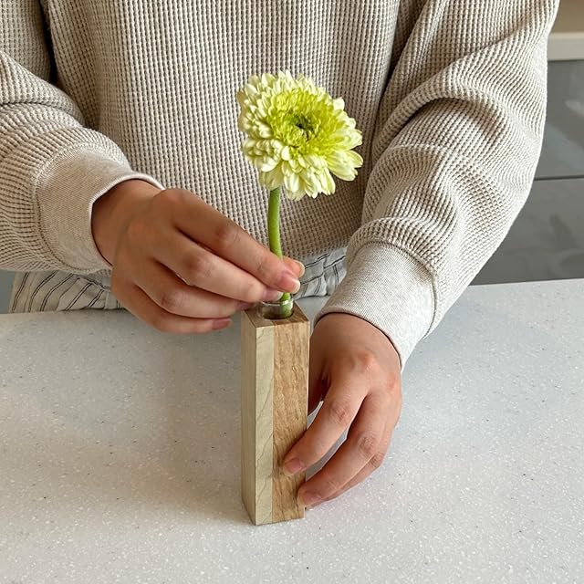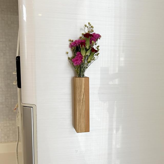 自然豊かな飛騨の山で育った天然無垢の木を使用した、マグネットタイプの小さな一輪挿しです。木製の土台部分に短い試験管が付属し、壁面だけでなく卓上でも使える2WAY仕様です。 インテリアに馴染みやすく、シンプルな花材とも相性良く使える商品です。