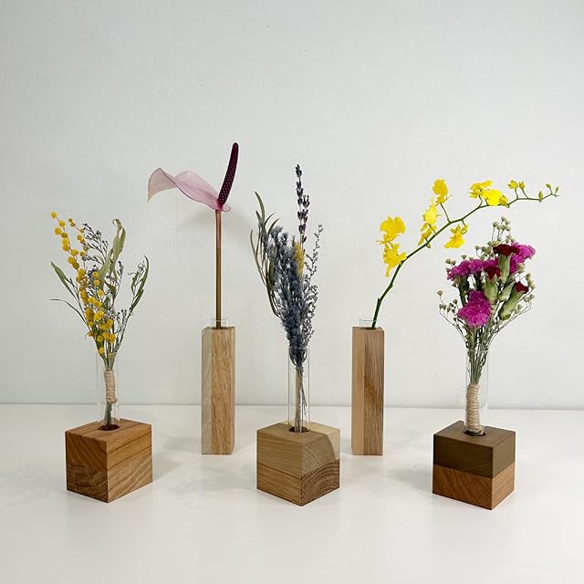 【生花でもドライフラワーでも】ガラスの試験管がセットになっているので、水を入れて生花を飾ることはもちろん、ドライフラワーのベースとしてもぴったりです。試験管のサイズは短めのため、お庭や公園など身近にある草花も飾りやすいです。