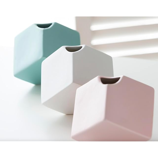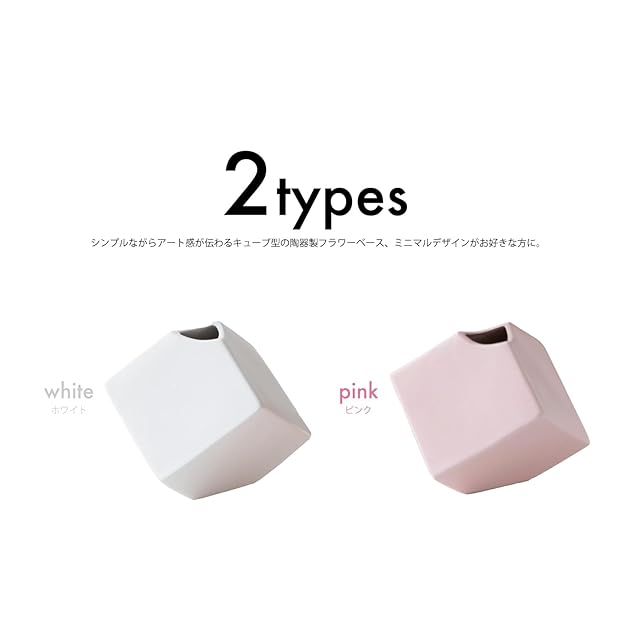 Kaenarie 花瓶 フラワーベース キューブ デザイン ホワイト ピンク シンプル おしゃれ (ホワイト, 単品)