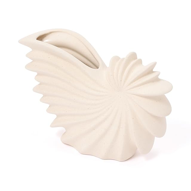 シェルの形を模ったセラミック製のフラワーベースです。<br>お花を飾らずに単体でオブジェとしても楽しむことができます。<br>お花を飾る場合は1、2本程度さりげなく生けるのがおすすめです。