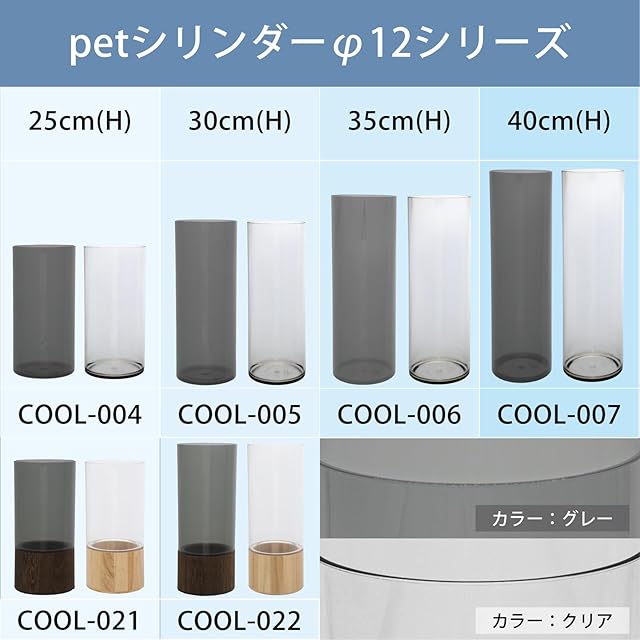 ポピー名古屋 フラワーベース PETシリンダー 直径12cmシリーズ 高さ約40cm 円柱 割れない 花器 cool-007 クリア