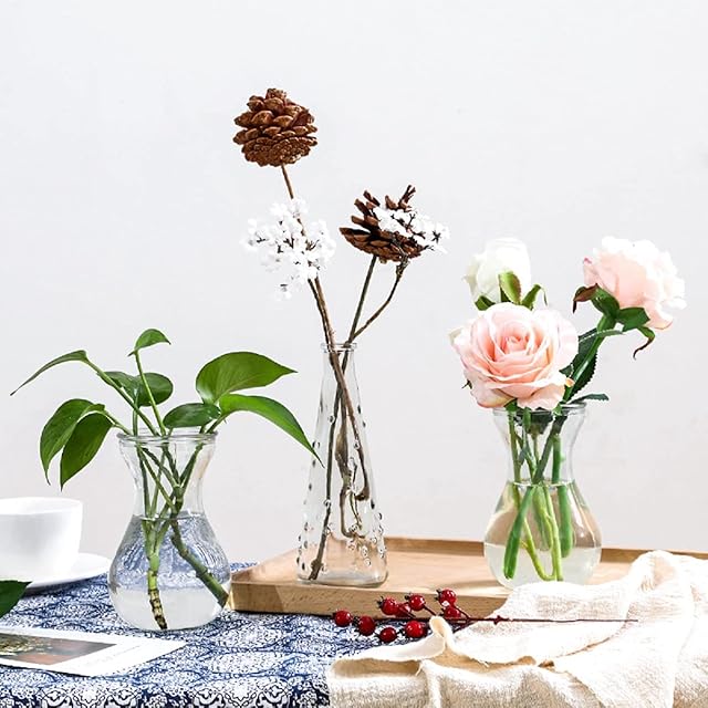 花瓶花器 3つセット北欧 ガラス 小さな フラワーベース - ガラスベース ガラスボトル +3つセット 小 おしゃれアレンジ インテリア 水栽培 生け花 造花 シンプル インテリア雑貨 飾り瓶 北欧 レトロ風