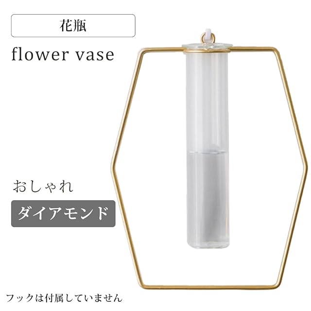 商品名:[アップフレーム] 壁掛け 花瓶 一輪挿し おしゃれ 試験管 ガラス フレーム フェイクグリーン インテリア雑貨 (ダイアモンド(植物なし))
