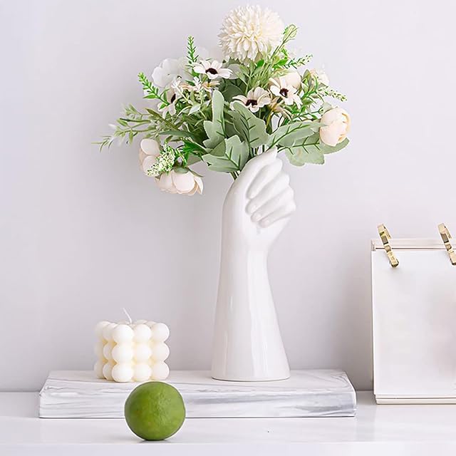 【おしゃれなデザイン】:精巧な花瓶は、女性の手の形に合わせてデザインされています。白い腕と細い指で、花を持っている女の子のようです。シンプルでエレガントな白いセラミックと手の形のデザインは、あなたの家を新鮮で芸術的な雰囲気を作ります。