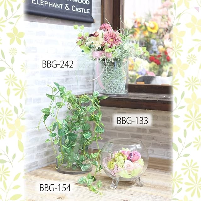 部屋のテイストや場所を選ばず使えるスタンダードなガラス器、どんな花色にも合わせやすいシンプルなデザインです。花だけでなく、葉もの、枝もの、実ものにもおすすめです。