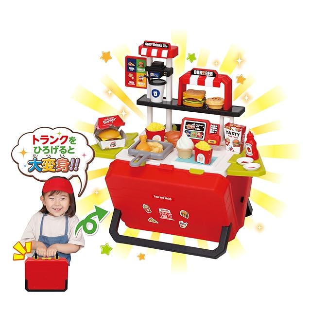 トランクケースがファストフードショップに大変身!アクセサリーがたっぷり入ったおままごとセット!
