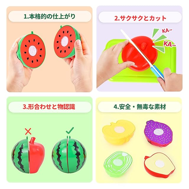 商品名:Sotodik おままごとセット ごっこ遊び 32点 収納バッグ おままごと キッチンおもちゃ 切れる野菜 ケーキ アイスクリーム ハンバーガー 料理遊びセット 知育玩具 子どもの誕生日プレゼント 入園お祝い