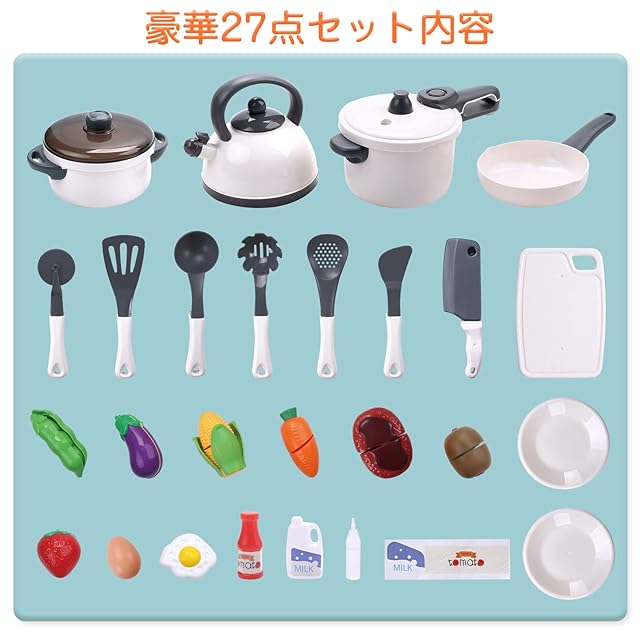 Cute Stone おままごとセット おもちゃ 知育玩具 27点セット リアル噴霧 圧力鍋 お鍋 ままごと用調理器具 贅沢食材 ごっこ遊び 親子遊び 誕生日プレゼント