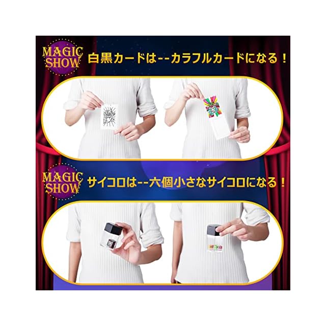 ✨【様々な場面で活躍】このマジックセットを持っている子供たちは、友達や家族と一緒にマジックショーをすることができます。誰もが驚くようなトリックを披露することで、周りから注目を集めることもできます。また、誕生日パーティーや集まりなどの特別なイベントでは、マジックを披露することで、より盛り上がりを演出することができます。マジックセットは、様々な場面で活躍する楽しみな遊び道具です。