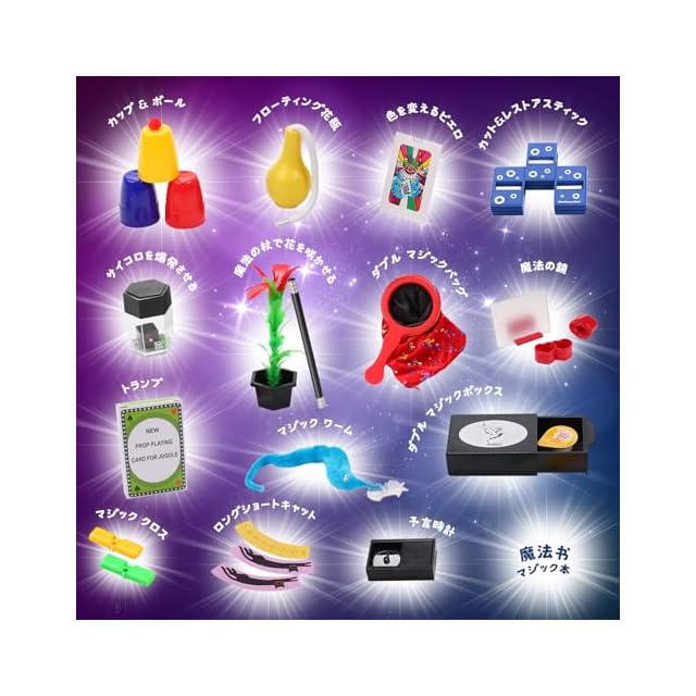 14種類のマジックグッズが含まれたセットです。サイコロ、カット&レストアスティック、予言時計などのマジックグッズはとてもおもしろいです。子供たちは、独創的なトリックを楽しみながら、創造力を刺激し、手先を器用に使う力を育むことができます。 ✨マジックセットには、収納ボックスが付属しており、すべてのマジックグッズを整理して収納することができます。また、収納ボックスが付属しているので、持ち運びにも便利です。 ✨このマジックセットを持っている子供たちは、友達や家族と一緒にマジックショーをすることができます。誰もが驚くようなトリックを披露することで、周りから注目を集めることもできます。また、誕生日パーティーや集まりなどの特別なイベントでは、マジックを披露することで、より盛り上がりを演出することができます。マジックセットは、様々な場面で活躍する楽しみな遊び道具です。 ✨ このマジックセットには、簡単に理解できる説明書が付属しています。初心者や子供たちでも簡単にマジックを学ぶことができます。手順やトリックを理解するのに役立つので、安心してマジックを楽しむことができます。また、練習を重ねることで、自信をつけて、より複雑なトリックにも挑戦することができます。 ✨この魔法セットは、様々なイベントや祝日に贈ることができます。例えば、クリスマスや誕生日のプレゼントとして贈ることができます。また、子供たちが学校や幼稚園の発表会やお祭りに向けて練習をしているときに、モチベーションを高めるための贈り物としても最適です。