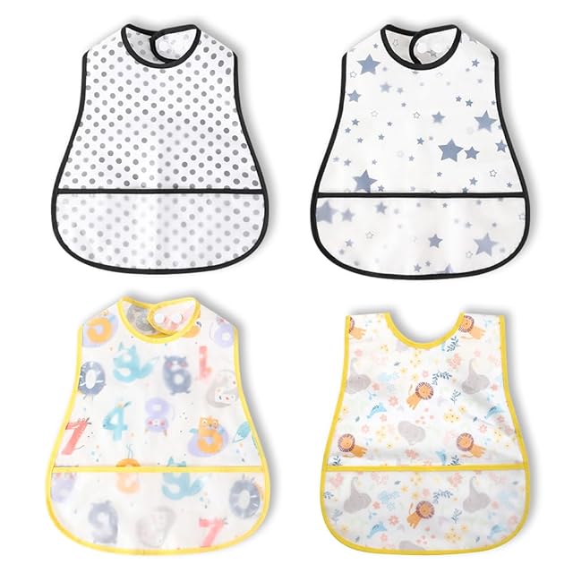 [スリーマッシュルーム] 食事用エプロン ベビー 子供 スーパー ビブ ソフトスタイ - 防水よだれかけ 赤ちゃん 離乳食エプロン 袖なし ポケット付き 防水 軽量 名前入 保育園用 セット 女の子 男の子
