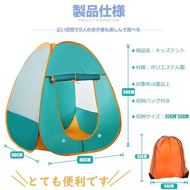 ⁂「丈夫な素材・広い空間」キッズテントはポリエステルを採用され、無毒で無臭、洗いやすい、メッシュ生地で通気性も良く、しかも中にいるお子さんの様子が見えてママも安心です。テントは大きい空間を占めない、大きさも子供2人入れるサイズで楽しく料理を中で作ったり、本を読んたり、休憩したり、かくれんぼしたり、自由的に遊びたり、最高です。