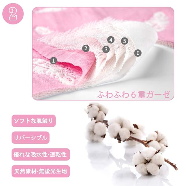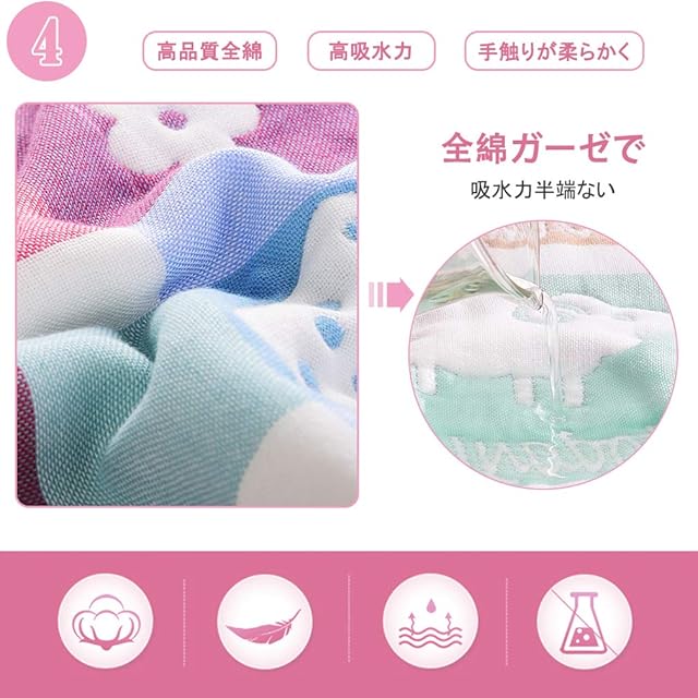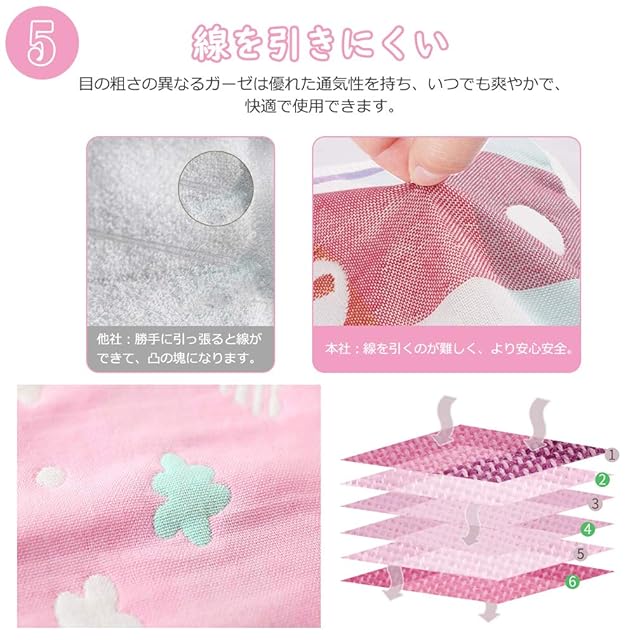 「優れな吸水性·速乾性」6層ガーゼを使用し、ちょうどよい厚みで、水分をよく吸収してくれます。目の粗さの異なるガーゼは優れた通気性を持ち、いつでも爽やかで、快適で使用できます。