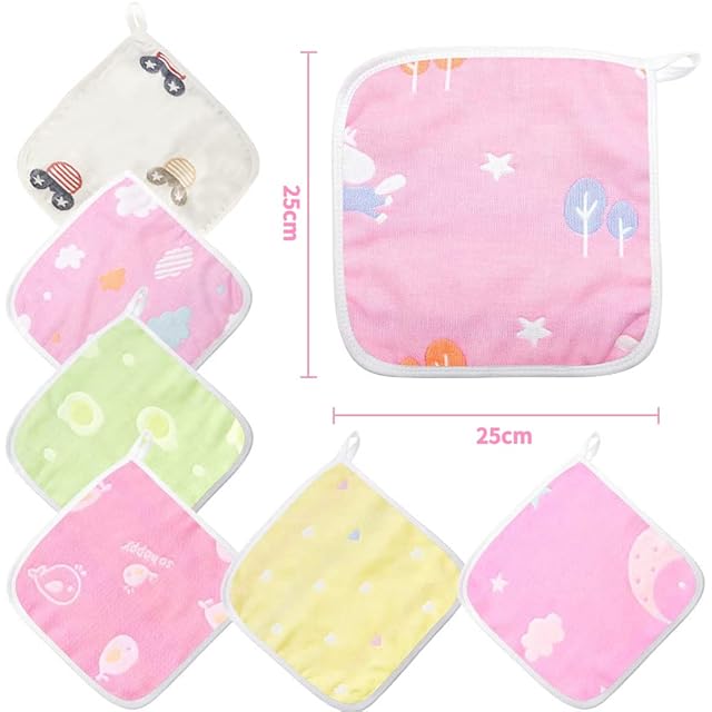 ガーゼハンカチ ベビータオル ベビービブ 子供用フェイスタオル リバーシブル おしぼりタオル 綿100% 6重ガーゼ 薄手 速乾 25*25cm 新生児 出産祝い 7枚セット