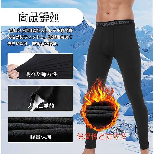 【春、夏、秋吸汗速乾&冬用裏起毛タイツ】接触冷感と吸汗速乾機能を発揮するポリエステルを採用、ひんやりとした着心地を体感できます。通気性が良く、熱や湿気を素早く放出しながら蒸発冷却します、長時間の着用、スポーツでの使用でも汗を長時間皮膚へ付着することを防ぎ、肌を快適な状態に保ちます。[裏起毛タイツ]特殊加工の起毛が暖かいエアポケットを作るので保温力に優れています。肌寒い夜や季節の変わり目に活躍する一着です。 暖かく快適な着用のための冬の下層。