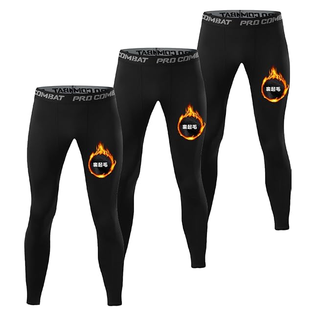 [LZLLZQ] 3枚セット 裏起毛 冬用 インナー ロングタイツ メンズ スポーツ スパッツ [防寒・軽量保温・伸縮性・吸汗速乾] コンプレッション タイツ スポーツウェア ランニングウェア ロング あったかインナー