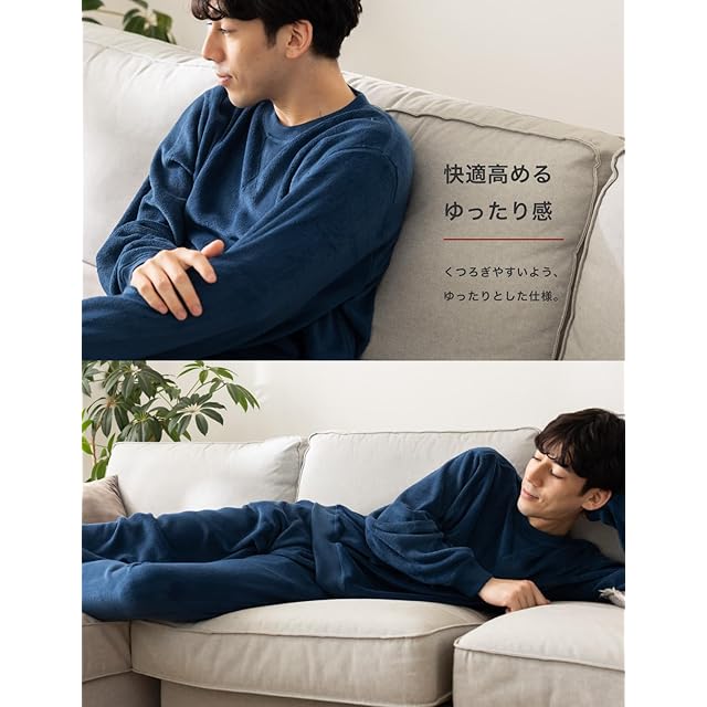 【両面フリースのパジャマ:冬のぬくもりと快適さ】 高密度の両面フリースを使用した、寒い冬に最適なパジャマ。保温性が高く、ふんわりなめらかな肌触りで、軽量ながらも毛布に包まれるような暖かさを実現。ゆったりとした設計とリブ編みの袖口・裾が冷気を遮断し、洗濯機で手軽に洗えるため、冬中快適にご利用いただけます。