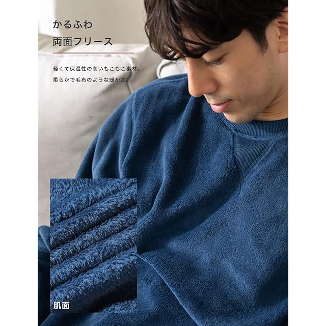 【ふんわりなめらかな肌触り】両面フリースパジャマは触れた瞬間に感じる格別なふんわり感、柔らかな肌触りは冬のパジャマに最適。定番のスウェットパジャマに比べて、肌触りが違います。軽いのに毛布に包まれているようなしっかりとした暖かさが特徴。とても軽くて程よい厚みのフリースパジャマなので着疲れせず一晩中心地よく着用していただけます。