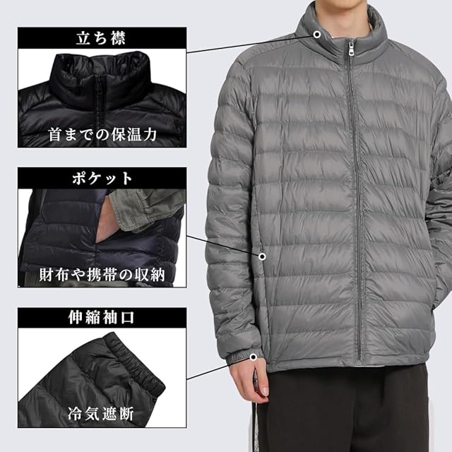 【超軽量ライトダウン】モコモコしないスリムタイプ。素材にこだわり抜いて277g(XLサイズ)超軽量を実現。モコモコしない薄いタイプで、春、秋、冬のロングシーズンに対応出来ます。5~15℃の場合はアウターとして、5℃以下の場合はインナーとして使えます。圧縮パックで届くので、ペタペタでダウンが入れないかと疑う場合、叩いてヘアドライヤーで吹くと膨らみます。