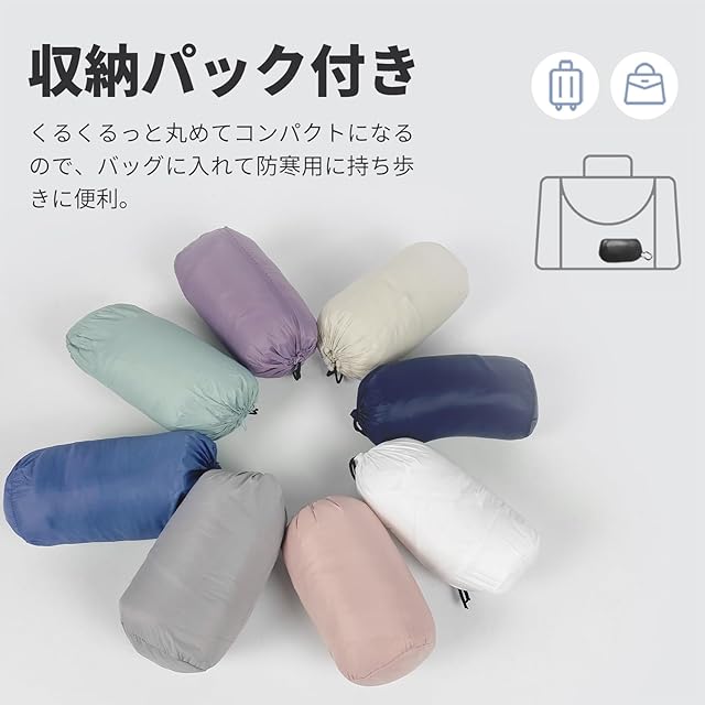 【コンパクト収納・パッカブル】収納パック付き。くるくるっと丸めてコンパクトになるので、バッグに入れて防寒用に持ち歩きに便利。