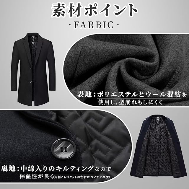 商品名:[WINROMTICO] チェスターコート メンズ 冬 ひざ上 ロングコート ビジネス フォーマル アウター ウール カジュアル 冬服 秋服