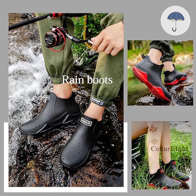 商品名:[シダーエイト] メンズ レインシューズ BR44 (ブラック×レッド, 27.0 cm)
