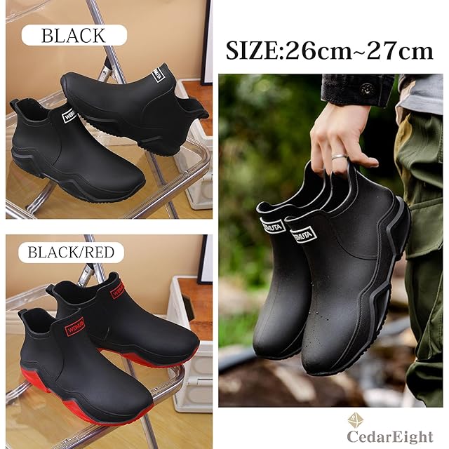 商品名:[シダーエイト] メンズ レインシューズ BR42 (ブラック×レッド, 26.0 cm)