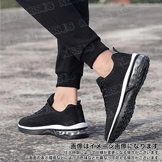商品名:キッソス(KISSOS) メンズ レディース シューズ スポーツシューズ メッシュ ウォーキング ランニング 室内 軽量 通勤 通学 (ブラック, 日本の靴のサイズ寸法, 大人, 数値, 25.5 cm)