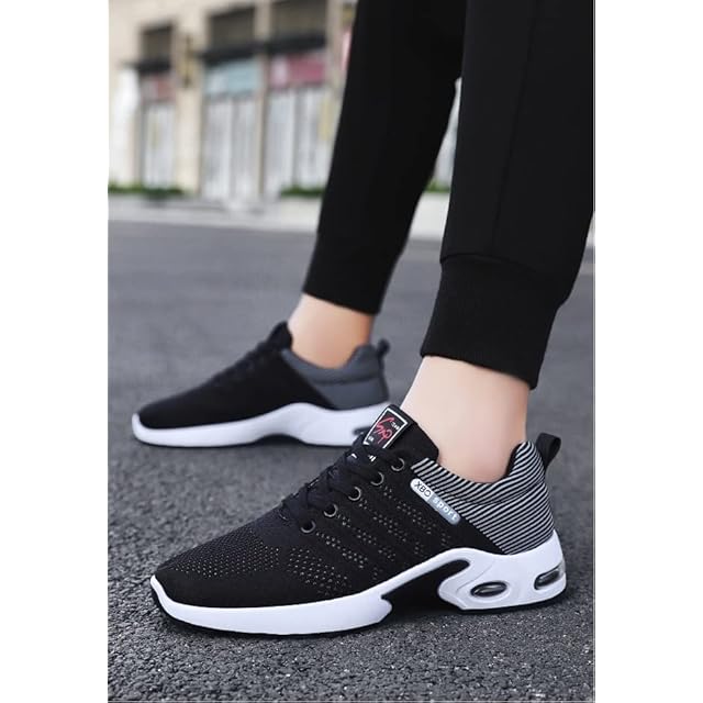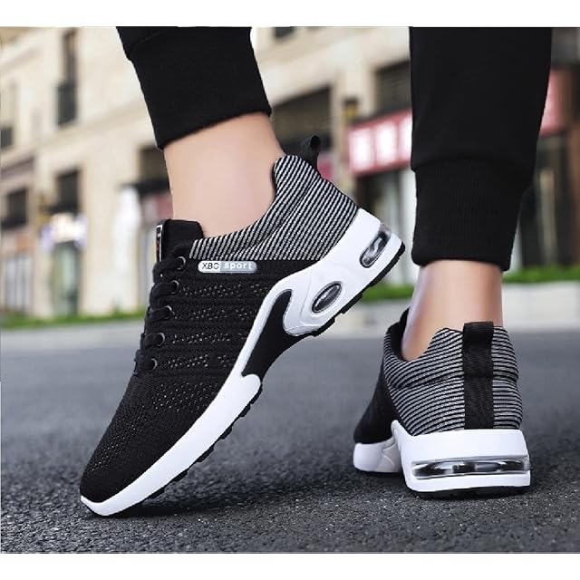 [AliAman] シューズ メンズ スポーツ ランニングシューズ メッシュ 通気性 滑り止め 柔軟 クッション性 トレーニング (白黒, 25.0cm)