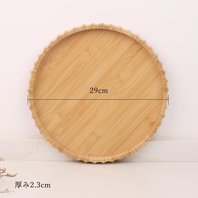 ❷【丈夫な素材】:軽くて取り扱いやすい天然竹製の丸型トレイです。環境に優しい上質な竹材を使用しており、耐久性が高く丈夫で長持ちします。お手入れ簡単:普通の中性洗剤でやわらかいスポンジを使って洗えばOK!