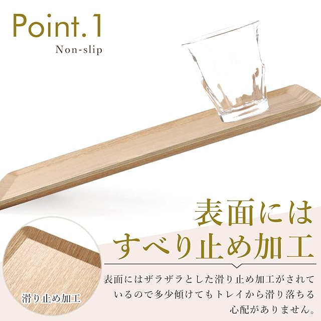木製トレイ トレー カフェ 長方形 お盆 すべり止め加工 ノンスリップ kicoriya (小)