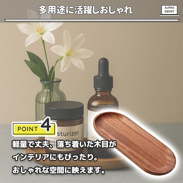 【天然木の温もり】自然な木目と風合いが魅力のトレーで、食卓やコーヒータイムに取り入れるだけで落ち着いた雰囲気を演出できます。【楕円型で使いやすい】18×10cmの楕円形デザインはデザート皿やスナック用、カフェトレーなど幅広く使いやすく、日常に溶け込みます。【手触りの良い仕上げ】手磨きによる滑らかな縁は触れて心地よく、角も丸みがあり、毎日の使用に安心な仕上がりです。【多用途に活躍】軽量で耐久性もあり、食器としてだけでなくアクセサリーや小物の収納、インテリアトレーとしても活躍します。【製品仕様】サイズ:18×10cm/重量:約0.1kg/材質:天然木/仕上げ:オイル加工/用途:デザート皿・コーヒートレー・小物置きなど
