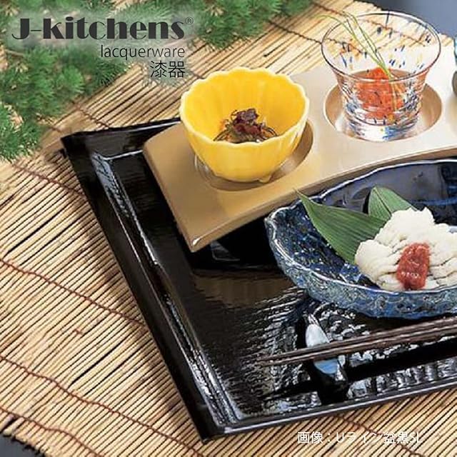 J-kitchens お盆 日本製 日本の 盆 トレー 尺4Uライン 銀梨地天黒SL(42.5cm x 33cm x 2cm)