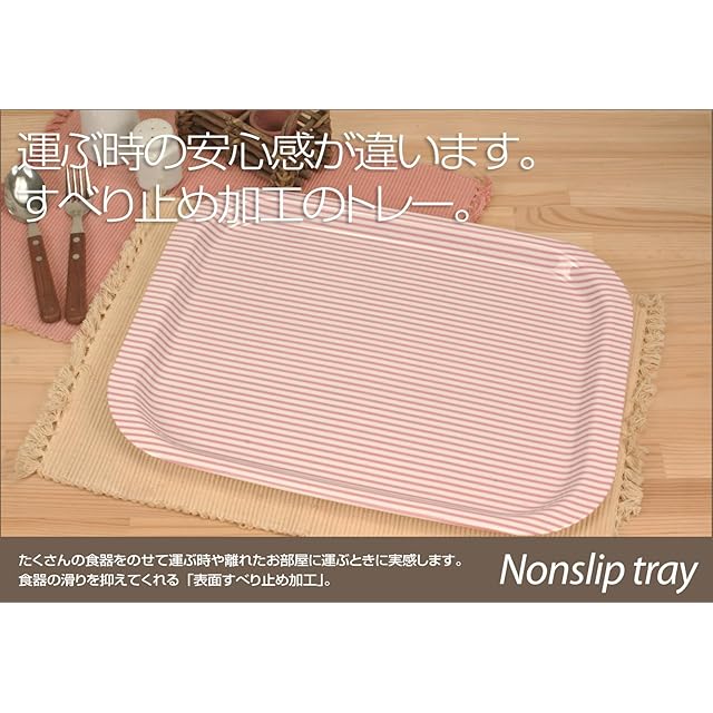 TATSU-CRAFT(タツクラフト) NS トレー L 42cm ストライプ ピンク すべり止め付 トレイ お盆 おしゃれ キッチン プラスチック 滑らない 長手盆 ノンスリップ ノンスリップトレー 業務用 カフェ レストラン 日本製