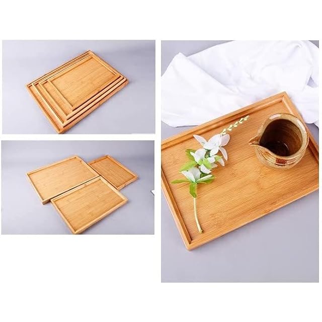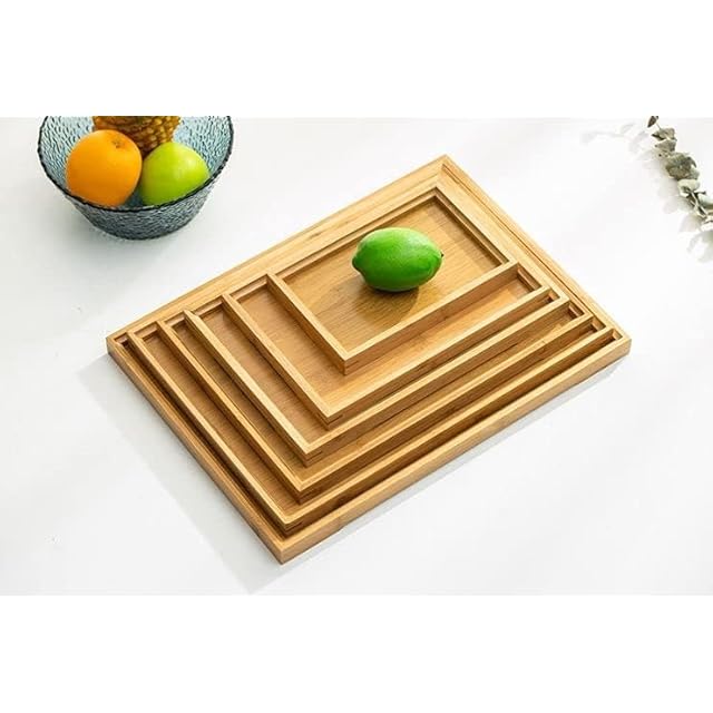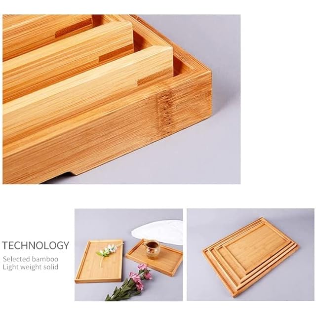 Ansimple 竹制トレイ 竹制お盆 バンブートレー ティー カフェ用トレー 天然素材 小・中・大サイズ選択 角型 卓上 和風 シンプル ナチュラル (41×29×2.4)