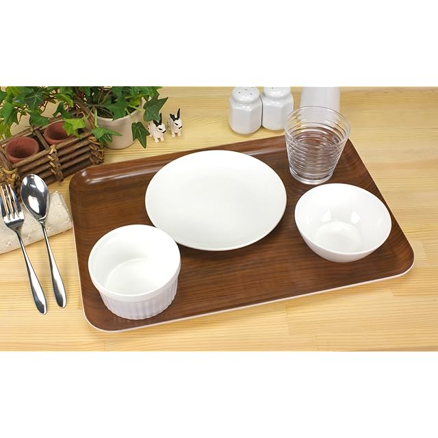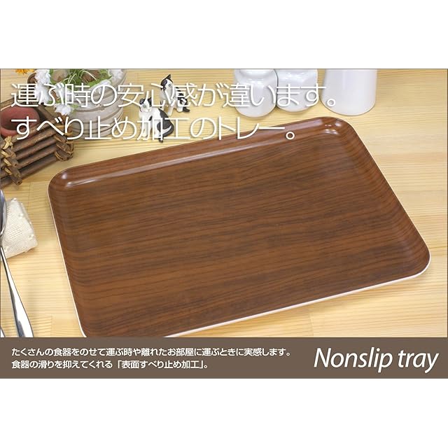 商品仕様 載せた食器が滑りにくいノンスリップ加工付 ●家庭用の電子レンジに対応(耐熱温度140℃ 1000W1分以内か600W3分以内 業務用は補償外) ●安心・安全にご利用頂ける、食品衛生法に合致した樹脂と塗料を使用 ●キッチンや周りのインテリアにも合わせて選べる、ナチュラルテイスト溢れる木目柄 ●家族分揃えたくなる、お揃いのおしゃれなデザイン ●商品へのキズを防いでくれる、個装箱入り仕様