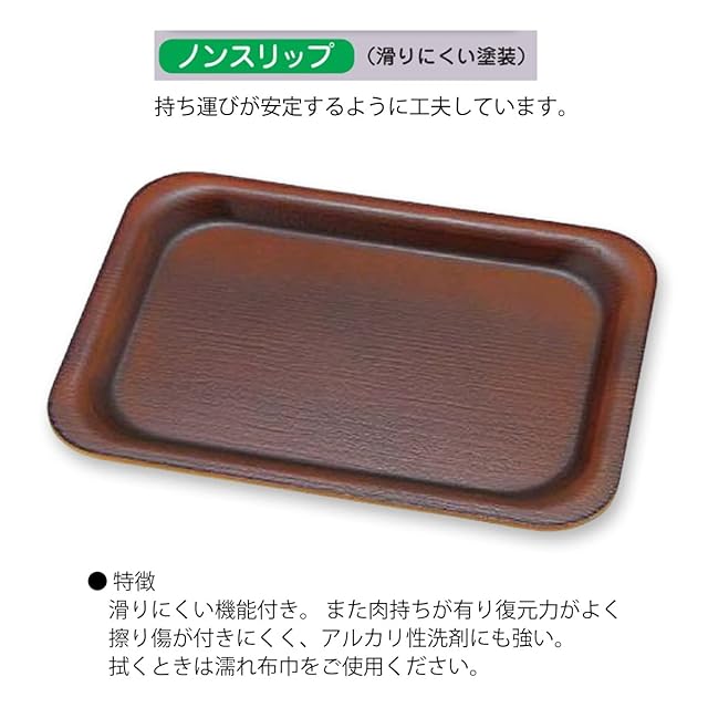商品名:J-kitchens お盆 耐熱A)厚渕隅丸ミニ トレー ( 盆 トレイ おぼん ) ブラウン 塗 弱 滑らない 28cm 耐熱 漆器 ( ABS 樹脂 ) 日本製 食洗機対応
