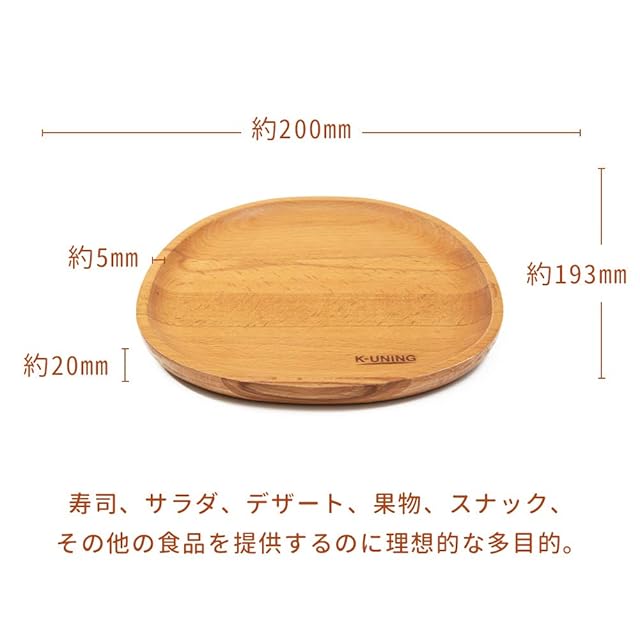 <p><b>なぜこのトレーを選ぶのですか?</p></b> 1.自社工場で丁寧につくった温もりのある木製食器、高品質の材質で作って、丈夫で使用寿命が長い。<br> 2.食卓のテイストを選ばず、どんなお料理とも相性の良い木製食器、毎日木のぬくもりを感じるトレーでおしゃれに演出。<br> 3. 高品質の木材で作られ、健康的で、すべての仕上げは無害で安全で環境にやさしいです。<br> 4. 寿司、サラダ、デザート、果物、スナック、その他の食品を提供するのに理想的な多目的。 <br> 5.シリーズで揃えたくなる可愛らしいデザインです、木のぬくもりであたたかな雰囲気を演出します。<br> 6.朝食でもランチタイムでもティータイムでもディナーでも、和食・洋食にかかわらず、いろんなシーンに使えてとっても便利です。<br> <p><b>商品紹介:</p></b> 【品牌】:K-UNING<br> 【商品仕様】200*193*20cm 重量:0.28kg 【素材・材質】:ヨーロッパビーチ<br> 【表面加工】:ポリウレタン塗装(耐熱温度150℃)<br> 【個数】:1pcs<br> 【原産国】:中国<br> <p><b>使用上の注意:</p></b> -画面上と実物では多少色具合が異なって見える場合もございます。<br> -電子レンジ、食器洗浄機、食器乾燥機の使用不可。 -通常のお手入れは乾いた布か軽く塗らした布などで表面を拭いてください。 汚れがひどい場合は、中性洗剤などで汚れを取ってから水で洗い流したあと、乾いた布で拭いてください。<br> -漂白剤やたわし、磨き粉は使用しないでください。<br> -食酢、レモン汁などの酸性のものが触れると染み、変色が起きることがあります。<br> -水につけ置きしたり、長時間湿気の多いところに放置しないでください。<br> -汚れたまま放置すると反りやカビが発生するおそれがあります。<br> -天然木使用のため、木目や節・色合いの違い等は、木の表情としてご理解ください。<br> -直射日光での乾燥は反りの原因になります。<br> -火の側で使用しないでください。<br>