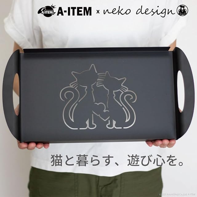 A-ITEM × neko design 猫のトレー お盆 サービングトレイ (ブラック)
