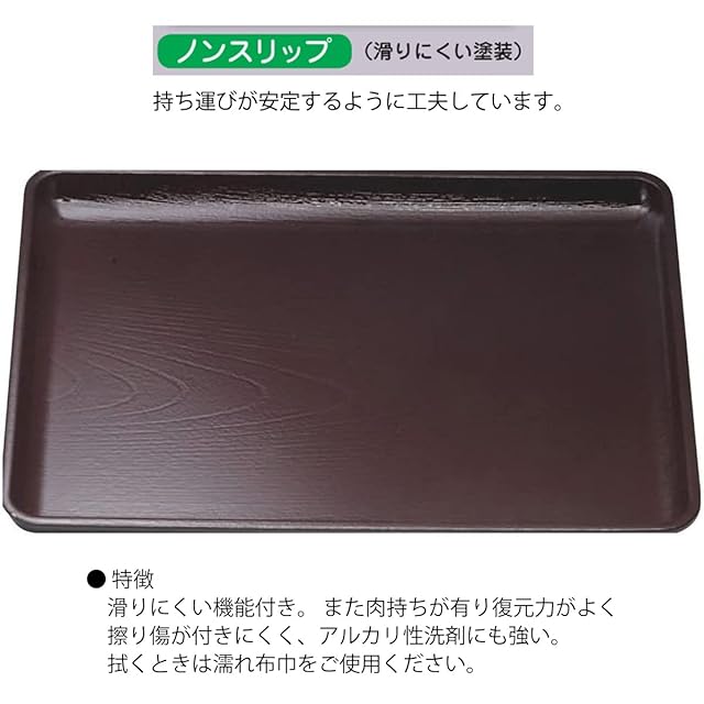 「滑りにくい塗装」が施してあり、持ち運びが安定するように工夫しています。 ●特徴:滑りにくい機能付き。 また肉持ちが有り復元力がよく擦り傷が付きにくく、アルカリ性洗剤にも強い。拭くときは濡れ布巾をご使用ください。