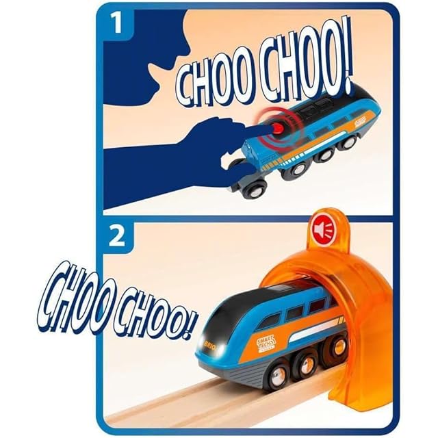 【楽しいアクションがたくさん】スマートテックサウンドはBRIO Worldに音の臨場感を広げます。お子様自身でサウンドをカスタマイズできます。また、車両が無線信号の送受信を行い、各トンネルからの指示を読み取り様々なアクションを行います。