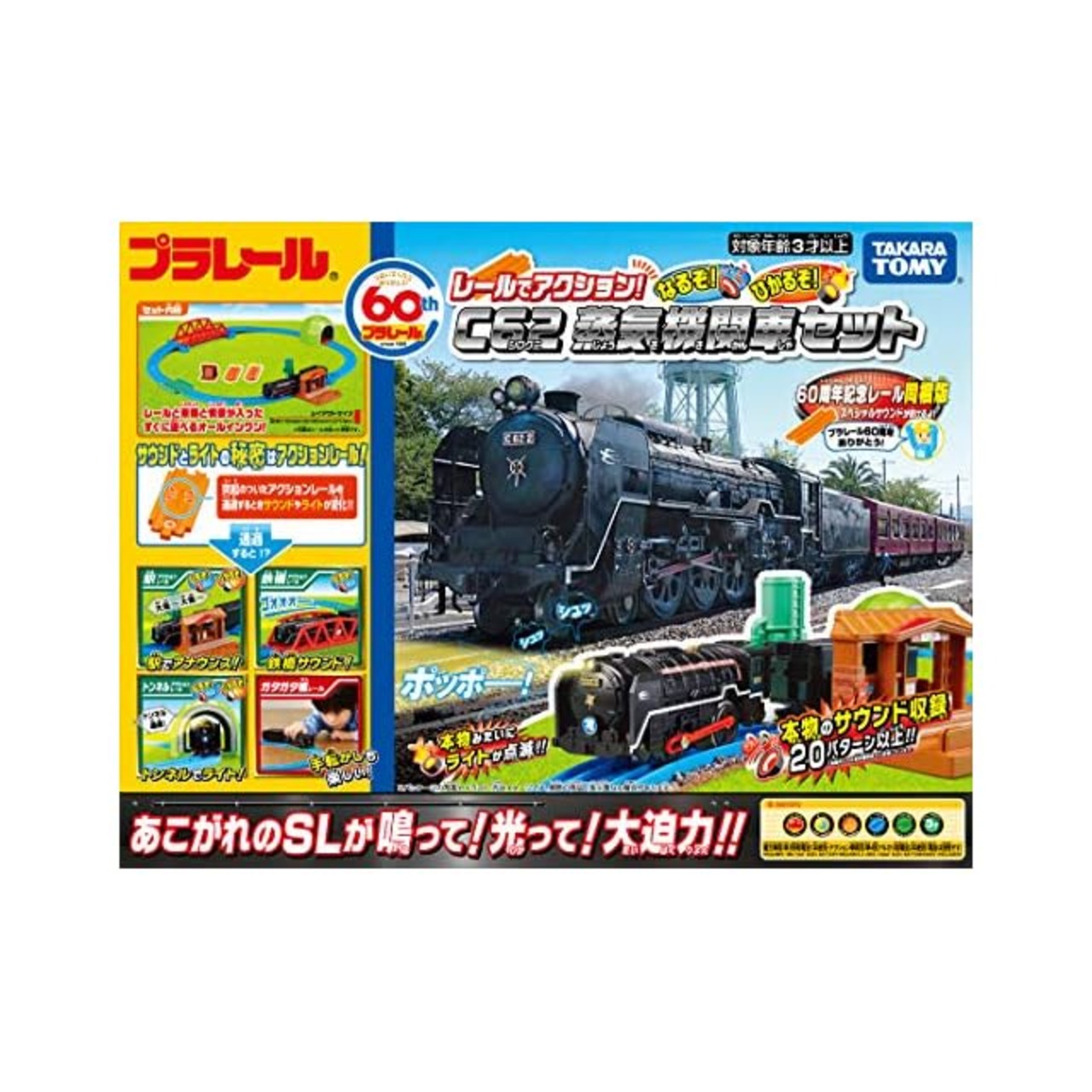 商品名:プラレール レールでアクション! なるぞ!ひかるぞ! C62蒸気機関車セット (60周年記念レール同梱版)【日本おもちゃ大賞2019 特別賞】