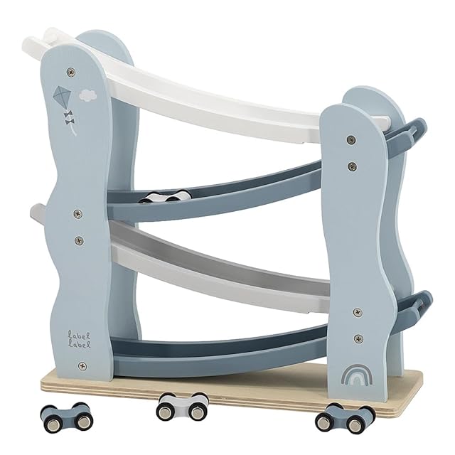 LabelLabel (レーベルレーベル) カースライダー 木製 スロープトイ 車 おもちゃ 1歳 2歳 誕生日プレゼント 男の子 女の子 木のおもちゃ 知育玩具 (ブルー) クリスマスプレゼント クリスマス