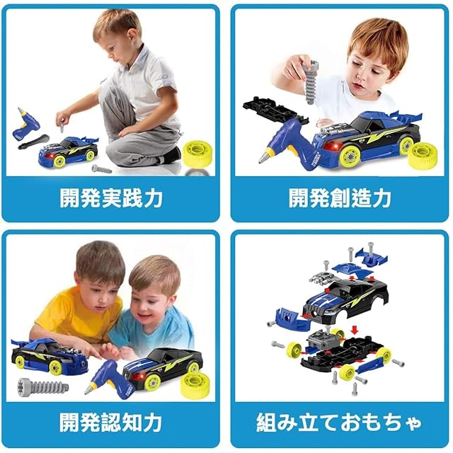 【教育的で楽しいゲーム】:ねじとドライバーを使って楽しくカンタンにくみたて遊びができるDIYシリーズ! 組立レーシングカーは、ドリルで組み立てたり・取り外したりすることによって空間予測の能力を養い脳のトレを追求して作られたおもちゃです。手・指先の訓練・発達に役立つ知育教材です。
